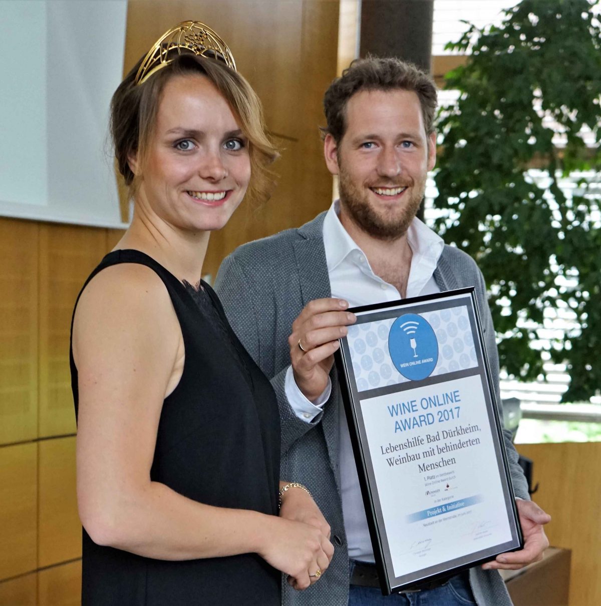 Wir haben uns sehr gefreut, als wir überraschend eine E-Mail von Joachim Kaiser (http://VINOSITAS.com) bekamen. In der stand, dass wir die Kategorie „Projekt & Initiative“ gewonnen haben! Zuerst dachten wir, dass das ein Witz sei und konnten es gar nicht glauben. Der Koch Sören Anders vom Restaurant „Anders auf dem Turmberg“ in Karlsruhe, der ein guter Freund und Kunde von uns ist, hat uns heimlich beim Wettbewerb angemeldet. Als Jan Hock zur Preisübergabe in Neustadt war, haben wir dann sogar noch den Publikumspreis und zusätzliche 400 € Preisgeld gewonnen! Die Preise wurden Jan von der Deutschen Weinkönigin Lena Endesfelder überreicht. Die Urkunden hängen jetzt bei uns im Weinverkauf, falls ihr sie euch mal anschauen wollt.