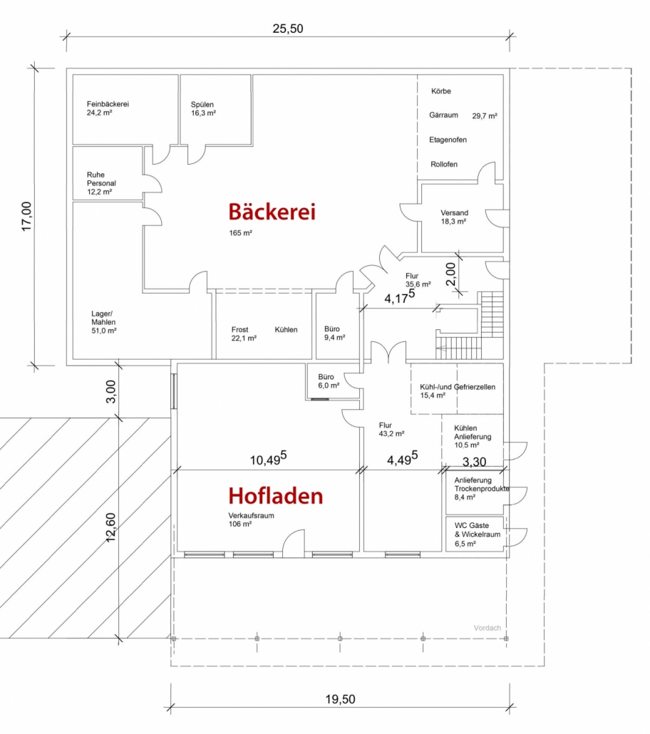 Die neue große Bäckerei mit 165 m² wird ausreichend Lagerplatz und zeitgemäße Arbeitsbedingungen bieten. Zudem soll die direkte Anbindung an unseren geplanten größeren Hofladen Synergieeffekte schaffen. Wir können so der gestiegenen Nachfrage nach Demeter-Backwaren aus der Region gerecht werden.