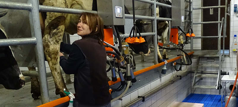 Hier ist unser heller und freundlicher neuer Melkstand zu sehen. Dieser wurde aus hygienischen Gründen mit Fliesen ausgestattet. So ist die Reinigung ganz einfach möglich. Durch den Aufbau des Melkstands wird es für unsere Mitarbeiter möglich, sicherer zu melken, denn Sie müssen sich nicht mehr unter die Tiere bewegen. So kann die Verletzungsgefahr für den Melker deutlich gesenkt werden. Sobald sich die Milchkühe an die neuen Umstände gewöhnt haben, wird das Melken für Mensch und Tier angenehmer und stressfreier sein.