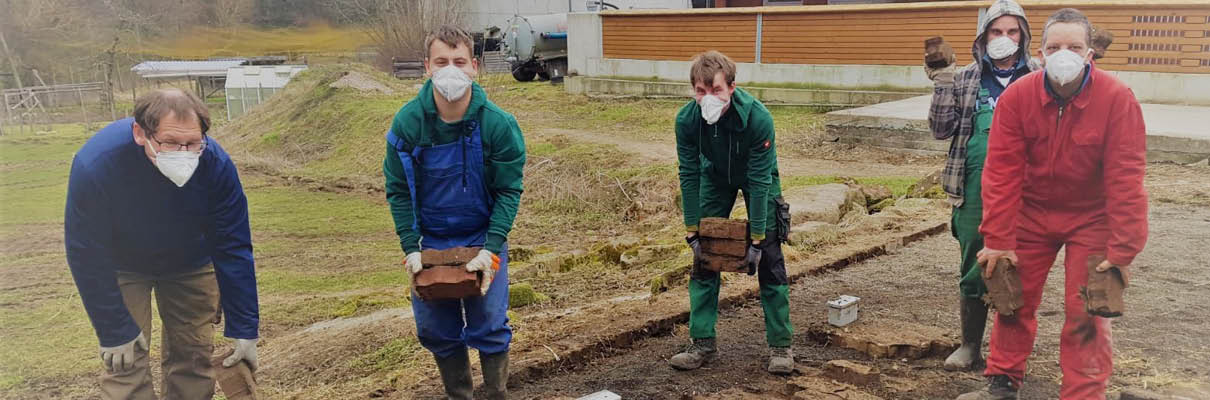 Ein erster Arbeitseinsatz für unsere neue Molkerei, Bäckerei und den Hofladen auf unserem Kleinsägmühlerhof. Hier wird aktuell das Pflaster ausgebaut, damit bald auf dieser Fläche (neben dem Kälber- und Schweinestall) gebaut werden kann. Mit viel Freude und Dynamik arbeitet unser Hofteam hier zusammen, damit der Bauunternehmer – wenn es in den nächsten Wochen losgeht, bei den Baggerarbeiten- keine Hindernisse mehr im Weg hat. auf