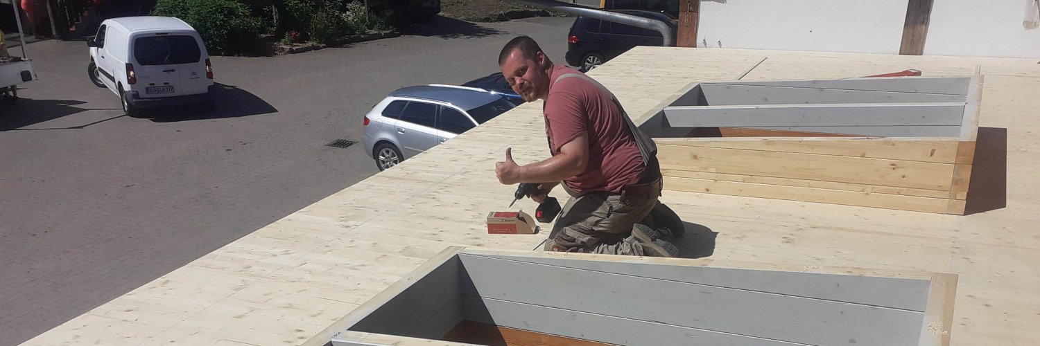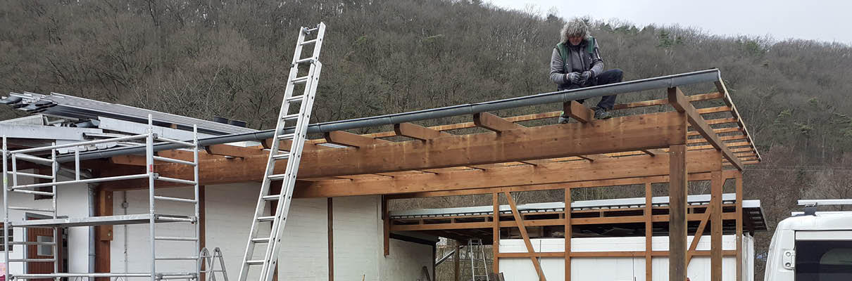 Die Dachdeckerarbeiten, die in der kommenden Woche erledigt werden, müssen wir fremdvergeben. Wir sind gespannt darauf, wie die Fa. Petry aus Bad Dürkheim die Arbeiten so ausführt, dass eine Dachbegrünung möglich ist.