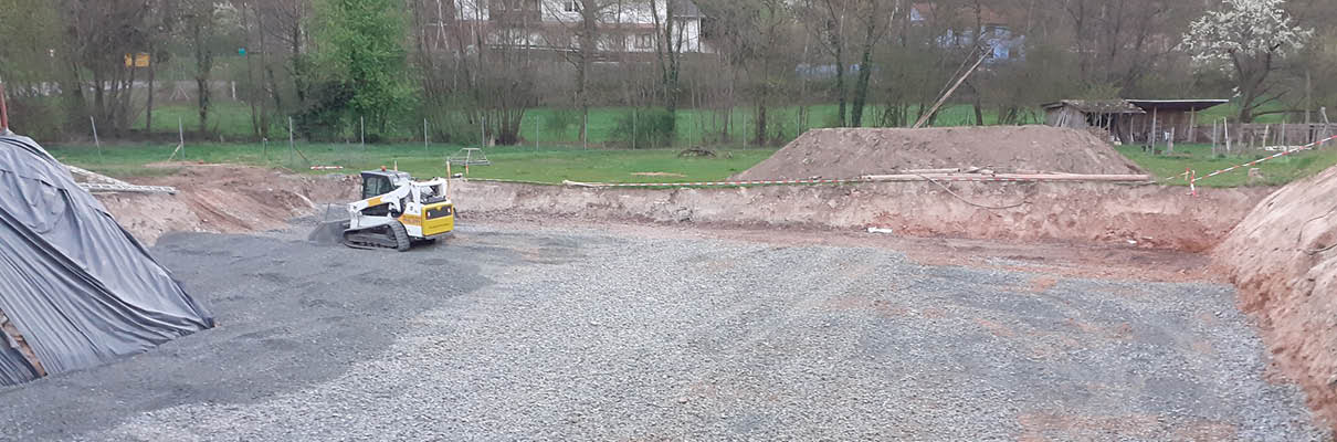 Endlich konnte es letzte Woche weiter gehen mit den Bauarbeiten. Die beauftragte Baufirma hat Schottermaterial eingebracht und verdichtet und die