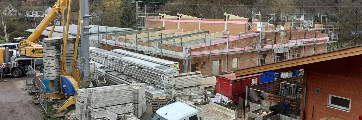 Ganz besonders angesichts der für uns unvorstellbaren Schäden und den damit verbundenen menschlichen Tragödien an der Ahr sind wir unendlich dankbar, dass wir weitestgehend von den Unwettern verschont wurden. Nahezu ungehindert dürfen wir weiter arbeiten und weiter bauen.