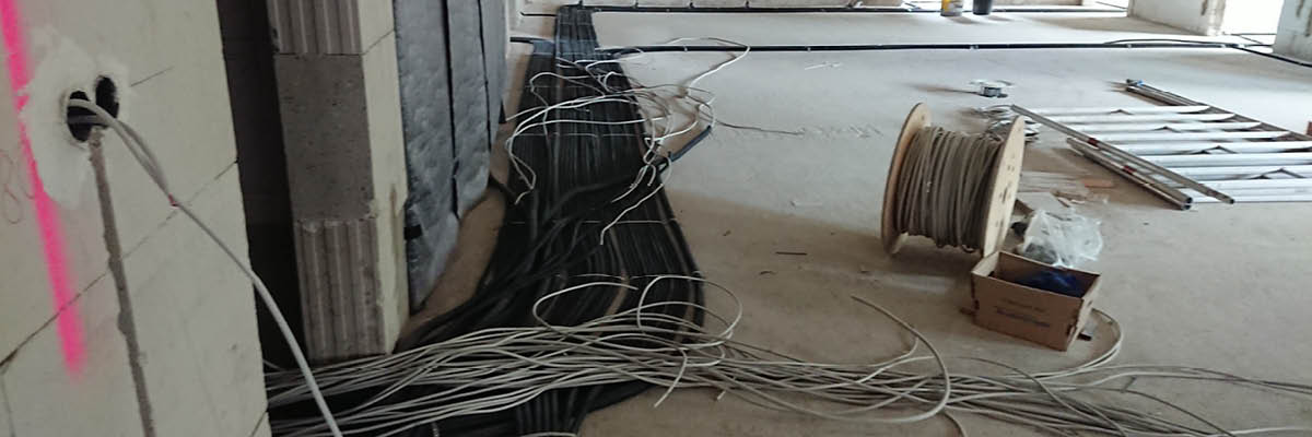 Man sieht, dass die Elektriker fleißig bei der Arbeit sind… Es muss jede Steckdose separat abgesichert werden. Daher müssen rund 2000 Meter Kabel verlegt werden.