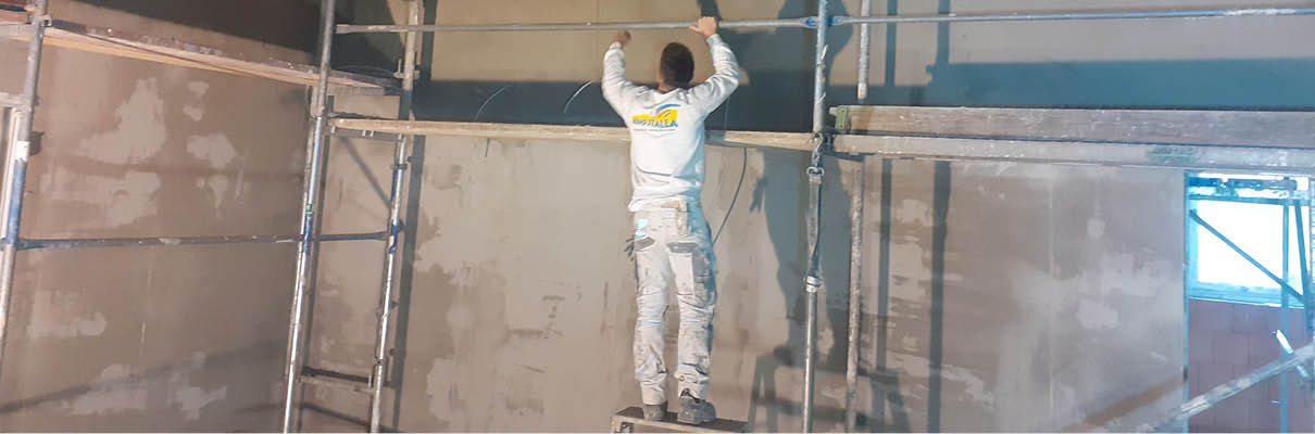 Viele Wände sind so hoch, dass ein Gerüst für die Verputzarbeiten aufgestellt werden musste.