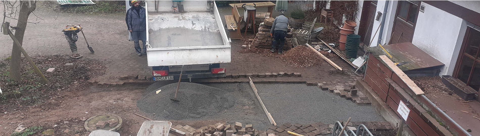 Für uns ein großer Schritt in Richtung Normalität ist, dass erste Pflasterarbeiten über den in die Erde verlegten Versorgunsleitungen stattfinden. So kann unser Vorplatz des Wohnbereiches im Frühjahr wieder genutzt werden. Wir freuen uns darüber wirklich sehr :).