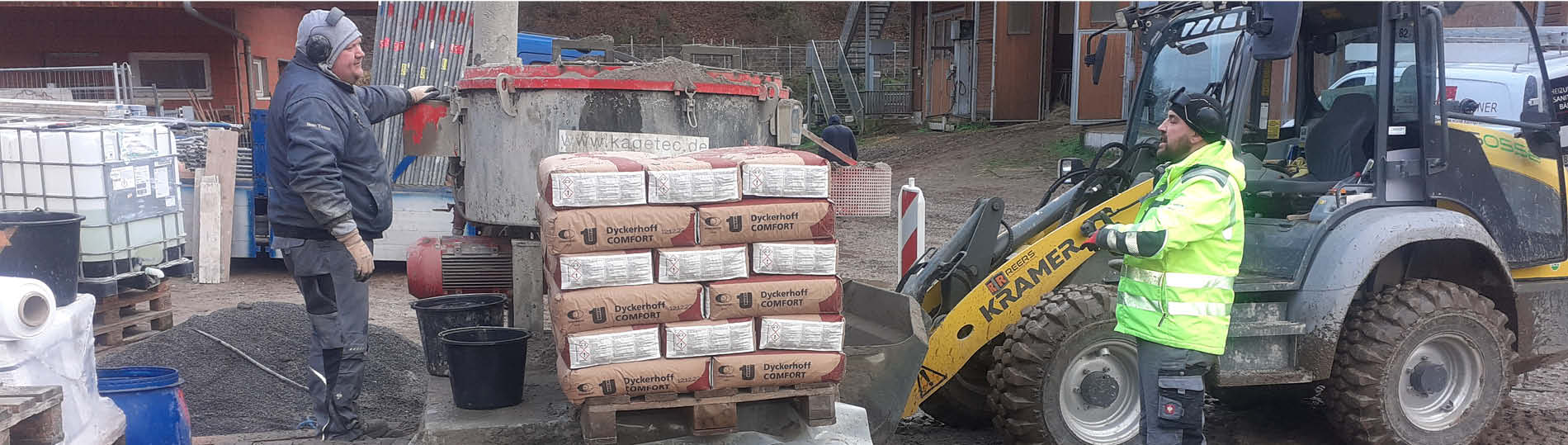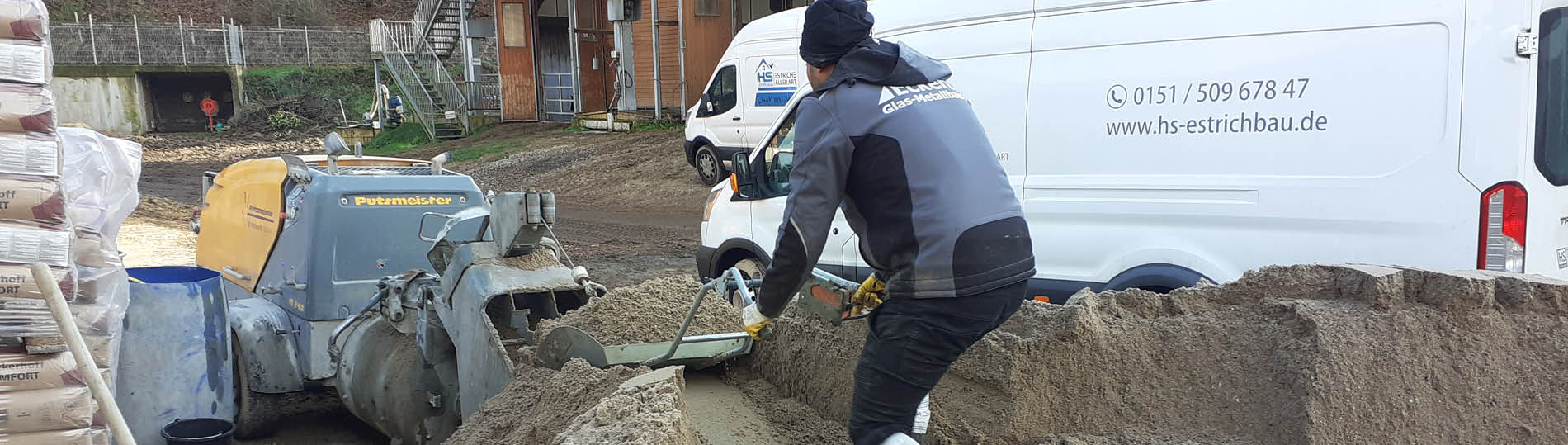 Seit der zweiten Januarwoche ist der Estrichleger in unserem Neubau tätig. Über 200 Tonnen Estrichbeton werden vor Ort gemischt und mit Hilfe von Schubkarren im Gebäude verbaut.