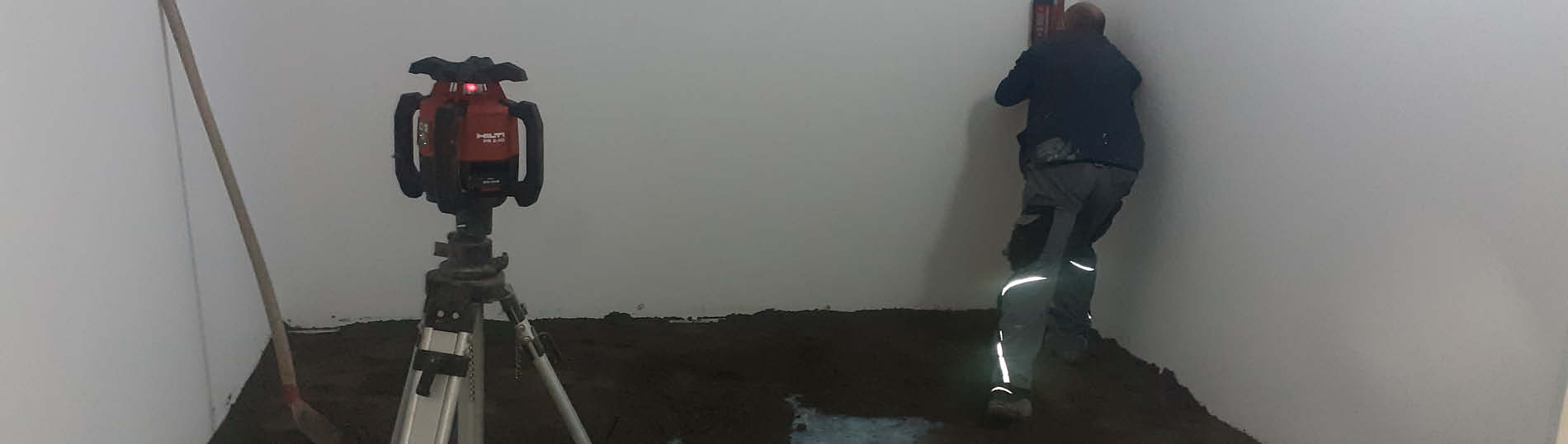 Der Estrich wird milimetergenau eingebaut, sodass das Wasser auch sicher zu den Bodeneinläufen gelangen kann. Auch dies ist ein großer Schritt in Richtung weiterer Innenausbau und Fertigstellung des Gebäudes.