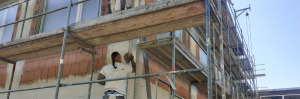 Unser Gebäude bekommt, zumindest äußerlich den letzten „Schliff“ – der Feinputz wird aufgebracht. Mit 25 Grad Celsius und leichter Bewölkung herrschen nahezu ideale Bedingungen für diese Arbeit. Der Putz trocknet nicht zu schnell und für die Leute vom Bau ist die Temperatur auch erträglich im Vergleich zu den vergangenen Tagen.