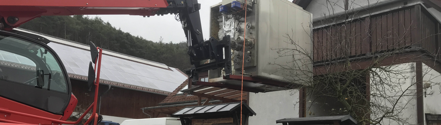 Das Vordach ist abgebaut. Was passiert denn da auf unserem Bauernhof? Ein riesiger Kran rückte an und sorgte für ein aufregendes Programm, das für Kunden und Mitarbeiter unseres Hofes durchaus für spannende Unterhaltung sorgte: