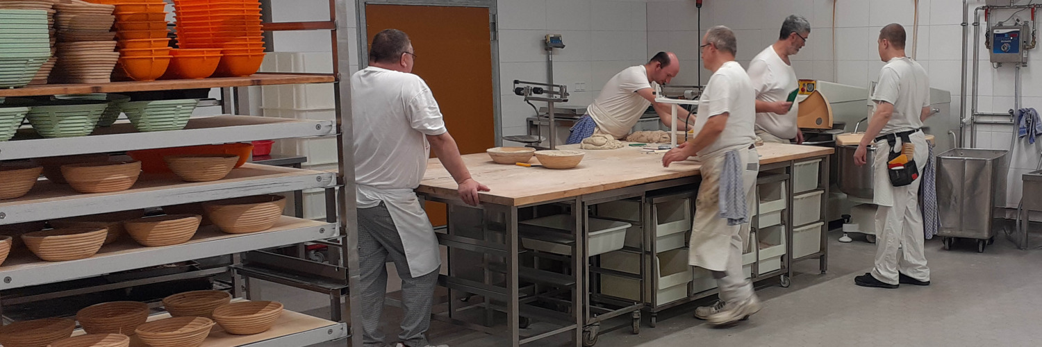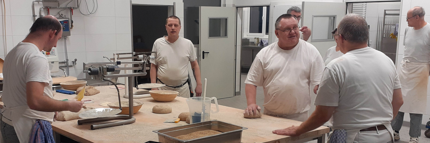 Am 26. Dezember 2023 starteten unsere Bäckerin Christine Diehl und unsere Bäcker Udo Golz, Peter Weidl, Franz Wilhelm, Helmut Hofmann, Guido Neumes und Sebastian Abt nach erfolgreichem Umzug in der neuen Backstube mit identischem Outfit: