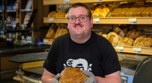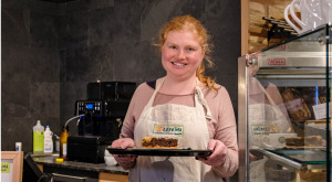 „Hallo, mein Name ist Juliane, ich bin 25 Jahre alt und arbeite seit einem halben Jahr im Leprima, bin also das jüngste Teammitglied. Ich arbeite an der Brottheke, dort räume ich die Backwaren ein, die wir morgens erhalten. Ich bediene auch die Kunden und halte alles sauber. Ich arbeite aber auch in unserem neuen Bistro, dort mache ich Kaffee und Tee, schneide und serviere Kuchen, außerdem mache ich den Abwasch. Am liebsten bediene ich die Kunden und richte das Gebäck. Ich finde unser Team besonders, weil alle immer freundlich zueinander sind. In meiner Freizeit male und puzzle ich sehr gerne, außerdem höre ich viel Musik und lese. Mein Lieblingsprodukt aus dem Sortiment sind die Laugen-Croissants vom Kleinsägmühlerhof.“