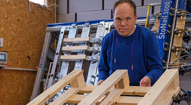 In unserer Holzwerkstatt arbeiten in vier unterschiedlichen Bereichen bis zu 40 Menschen mit Beeinträchtigung.