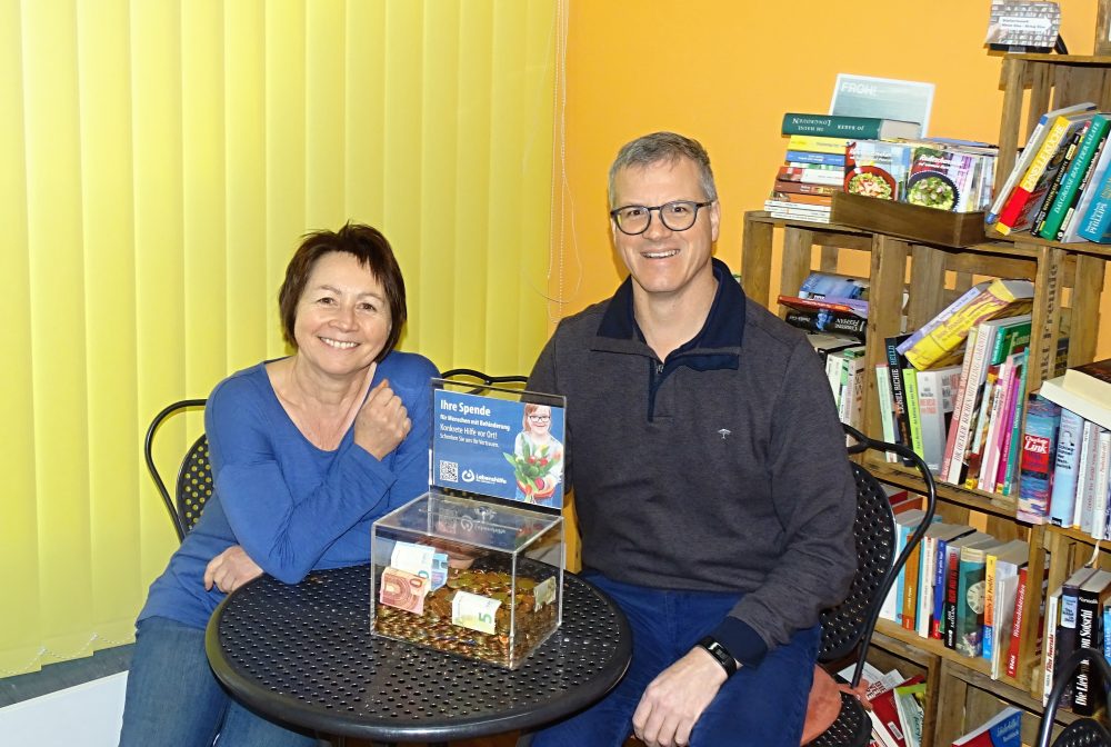 Direkt im Thekenbereich des Ladens wurde eine Spendenkasse aufgestellt und auf die Umbauarbeiten auf unserem Hof und auf das Projekt an sich aufmerksam gemacht.