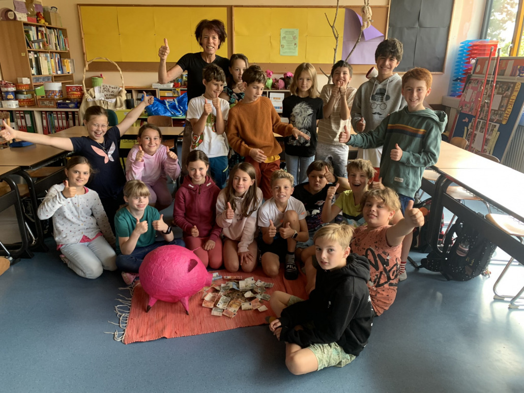 Nach einem Besuch unseres Biobauernhofs Kleinsägmühlerhof in Altleiningen haben die Kinder der 4b der Grundschule Wachenheim zusammen mit ihrer hoch motivierten Lehrerin Katja Peper gleich mehrere Spendenaktionen in unserer Region durchgeführt: